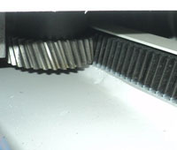 ПЕРЕДАЧА ШЕСТЕРНЯ-РЕЙКА С КОСЫМИ ЗУБЬЯМИ Привод продольного перемещения шпинделя через косозубую передачу гарантирует плавность и точность хода – это обеспечивается постепенным вхождением зубьев в зацепление и одновременным зацеплением двух зубьев, в отличие от прямозубых передач. |
