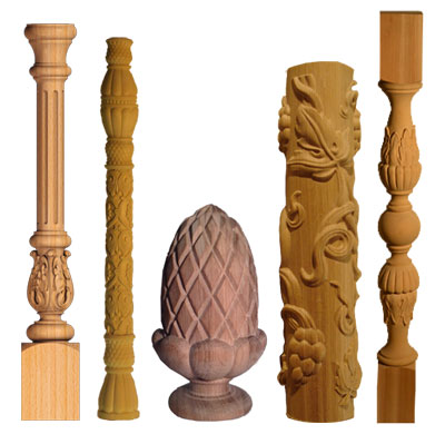 Художественная резьба и гравировка на балясинах, столбах и других телах вращения.